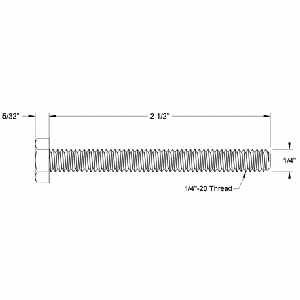 Threaded Hex Head Cap Screw, 1/4in-20 Thread, 2-1/2in