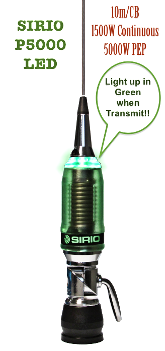 Sirio P5000 PL LED 10m & CB Mobile Antenna - Lights up