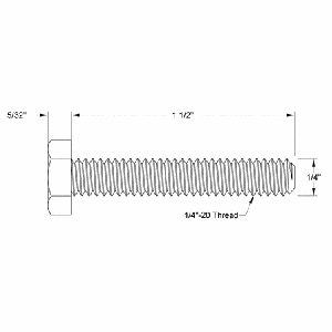 Threaded Hex Head Cap Screw, 1/4in-20 Thread, 1-1/2in