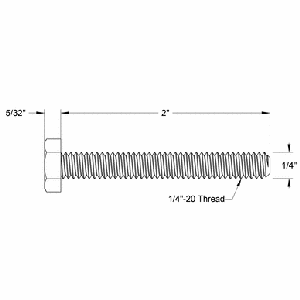Threaded Hex Head Cap Screw, 1/4in-20 Thread, 2in Length