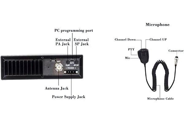 - Microphone: with push-to-talk /UP/DN and